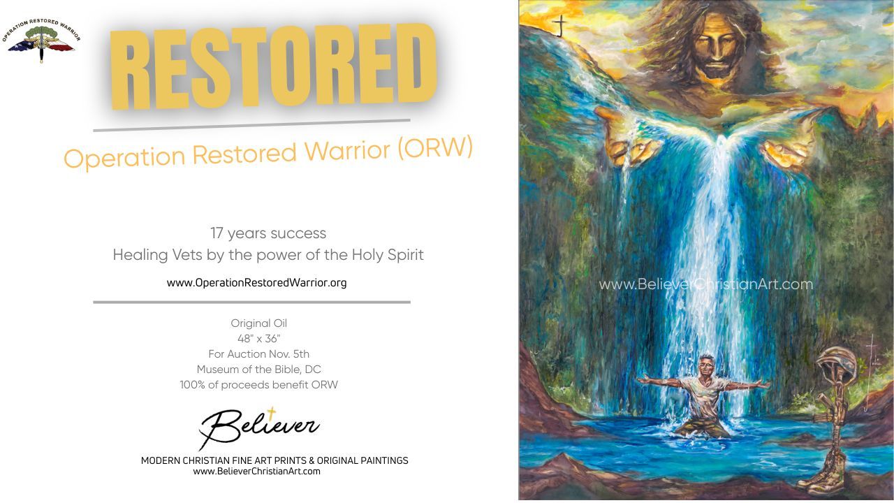 This original oil painting was created specifically for Operation Restored Warrior, and is a perfect expression of our life-giving mission and history through Jesus: